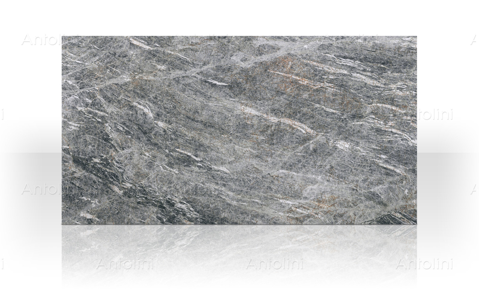 The meeting between the restlessness of continuous change in the air and the vital innate energy in the land appears to have given this extraordinary Quartzite the colours of infinity. There is a sense of the absolute, of unblemished purity across every surface created with this natural stone, which stands out for its grey/blue colours dotted with white and gold and can give rooms a sense of strength, calm and safety.