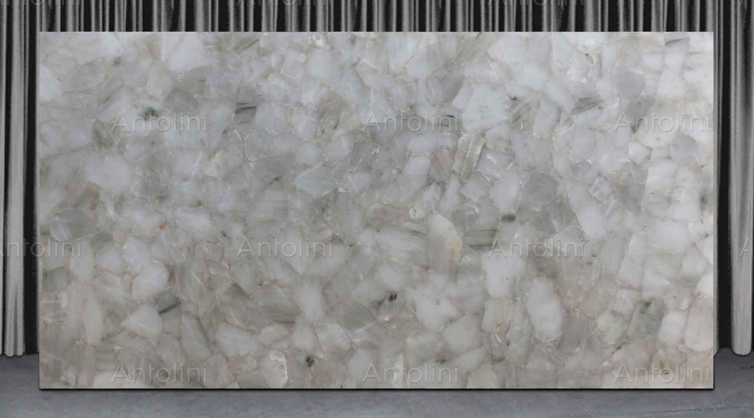 Over 130 varieties of select and precious gems enrich the Antolini® Precioustone Collection. Amethyst, quartz, jasper and agate are transformed into coverings of sheer class. These stones, particularly the translucent varieties that can be lit-up from behind, create unique colour effects and add original touches to a room.