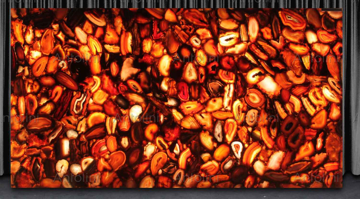 Precioustone Collection Elegancia natural. La materia original se interpreta con creatividad para dar vida a infinitas declinaciones que expresan el esplendor y la magnificencia. Más de 130 variedades de gemas preciosas y seleccionadas enriquecen la Precioustone Collection de Antolini®. Amatistas, cuarzos, jaspes y ágatas se transforman en revestimientos de clase absoluta. Estas piedras, en particular las variedades traslúcidas que se pueden retroiluminar, crean sugestiones cromáticas irrepetibles y decoran los ambientes con efectos originales.Para exaltar los espacios y donarles exclusividad.
