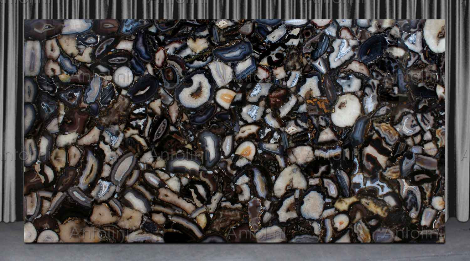 Precioustone Collection Elegancia natural. La materia original se interpreta con creatividad para dar vida a infinitas declinaciones que expresan el esplendor y la magnificencia. Más de 130 variedades de gemas preciosas y seleccionadas enriquecen la Precioustone Collection de Antolini®. Amatistas, cuarzos, jaspes y ágatas se transforman en revestimientos de clase absoluta. Estas piedras, en particular las variedades traslúcidas que se pueden retroiluminar, crean sugestiones cromáticas irrepetibles y decoran los ambientes con efectos originales.Para exaltar los espacios y donarles exclusividad.