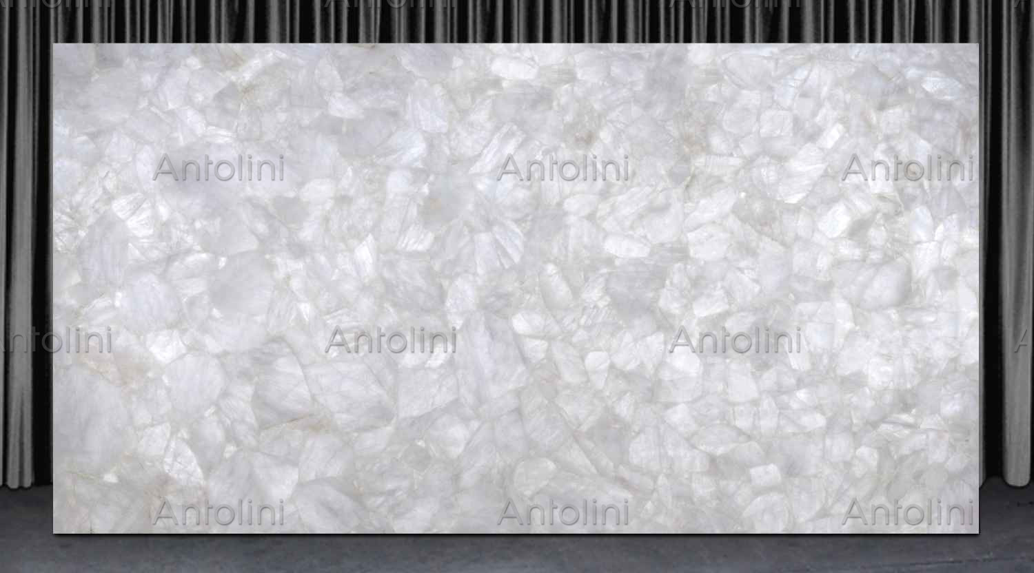 Precioustone Collection Elegancia natural. La materia original se interpreta con creatividad para dar vida a infinitas declinaciones que expresan el esplendor y la magnificencia. Más de 130 variedades de gemas preciosas y seleccionadas enriquecen la Precioustone Collection de Antolini®. Amatistas, cuarzos, jaspes y ágatas se transforman en revestimientos de clase absoluta. Estas piedras, en particular las variedades traslúcidas que se pueden retroiluminar, crean sugestiones cromáticas irrepetibles y decoran los ambientes con efectos originales.Para exaltar los espacios y donarles exclusividad.