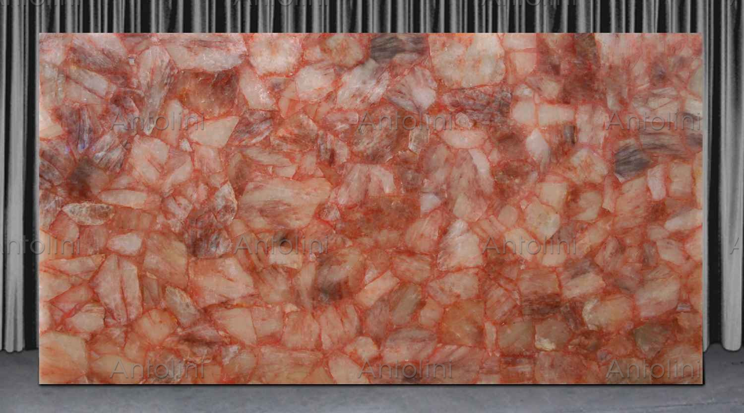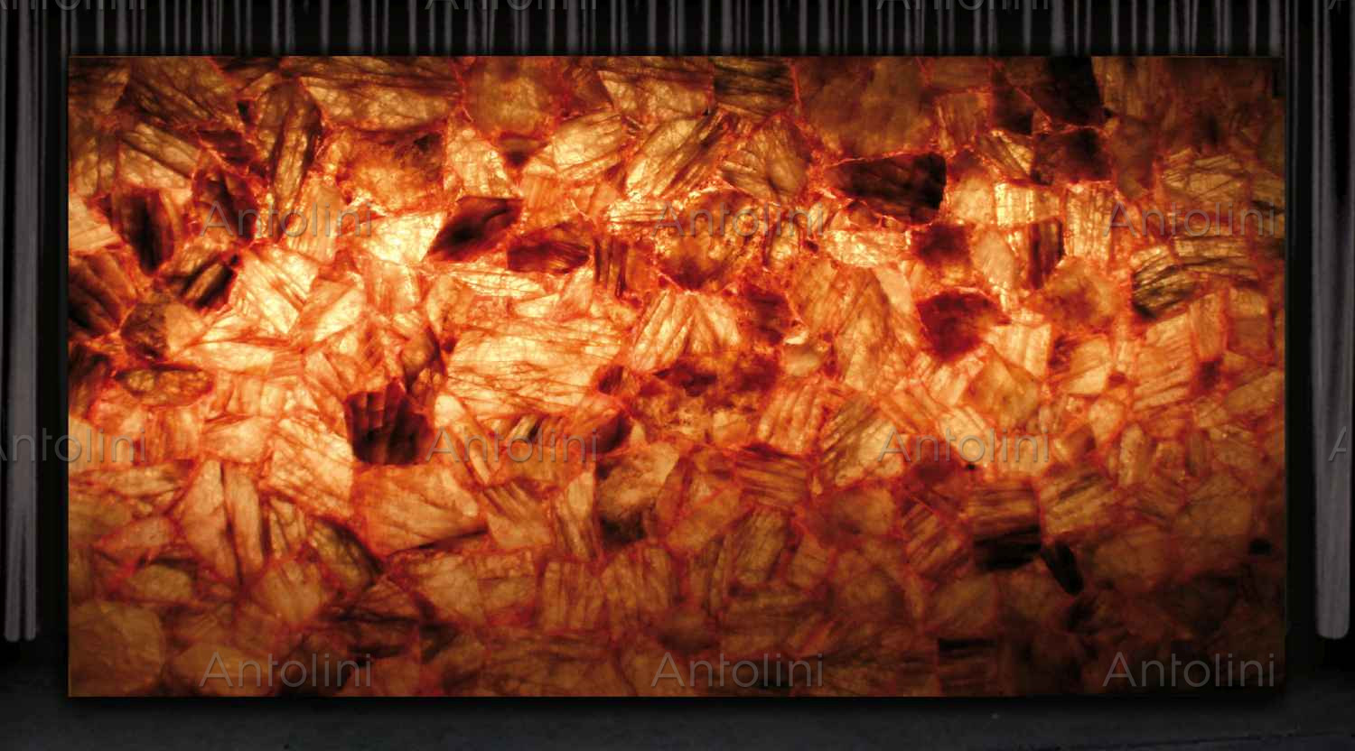 Precioustone Collection Elegancia natural. La materia original se interpreta con creatividad para dar vida a infinitas declinaciones que expresan el esplendor y la magnificencia. Más de 130 variedades de gemas preciosas y seleccionadas enriquecen la Precioustone Collection de Antolini®. Amatistas, cuarzos, jaspes y ágatas se transforman en revestimientos de clase absoluta. Estas piedras, en particular las variedades traslúcidas que se pueden retroiluminar, crean sugestiones cromáticas irrepetibles y decoran los ambientes con efectos originales.Para exaltar los espacios y donarles exclusividad.