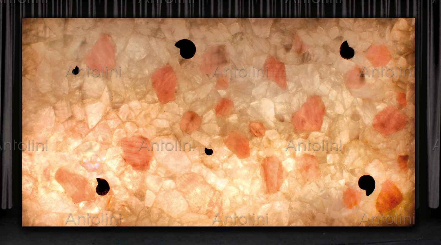 Estas piedras, en particular las variedades traslúcidas que se pueden retroiluminar, crean sugestiones cromáticas irrepetibles y decoran los ambientes con efectos originales.Para exaltar los espacios y donarles exclusividad.