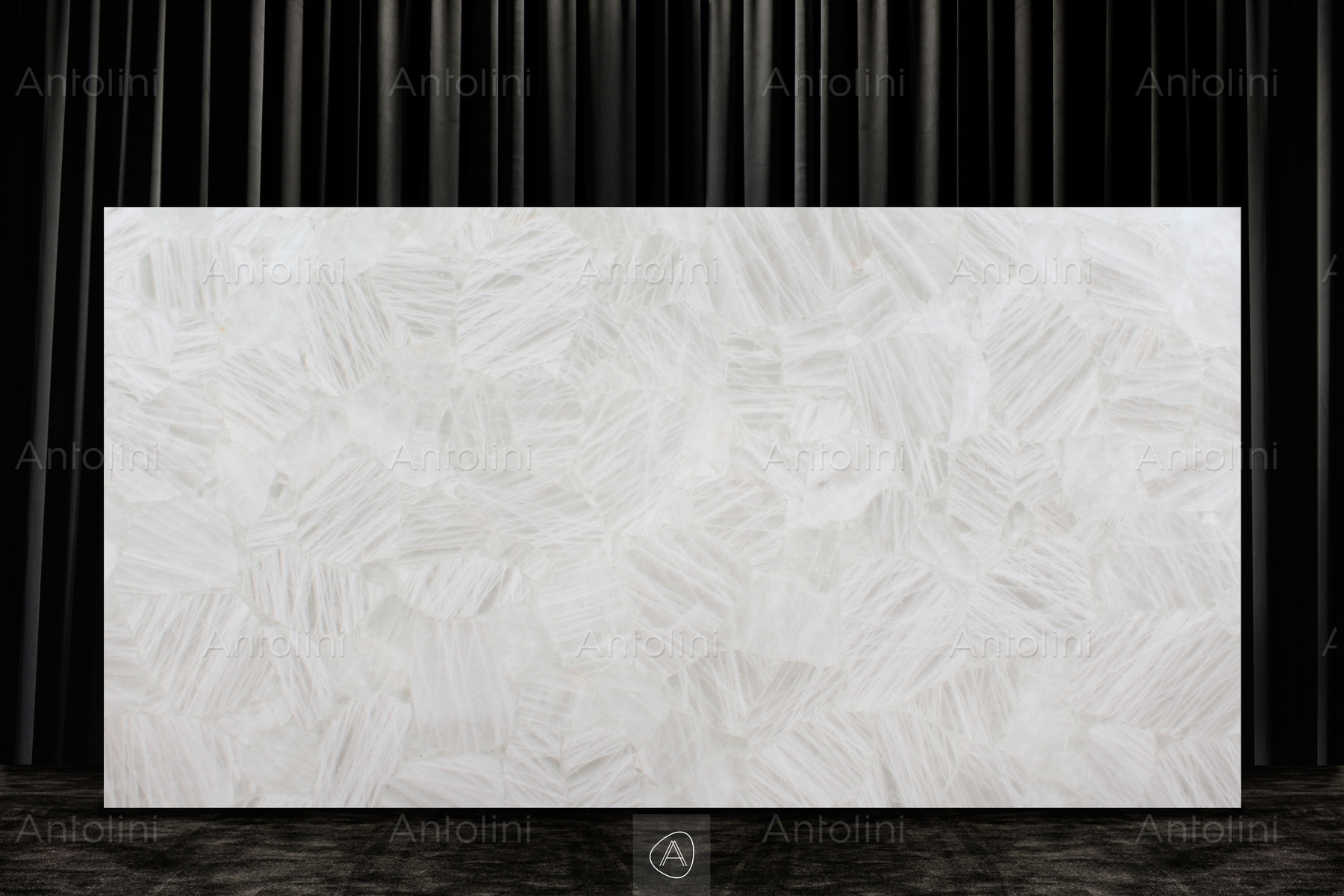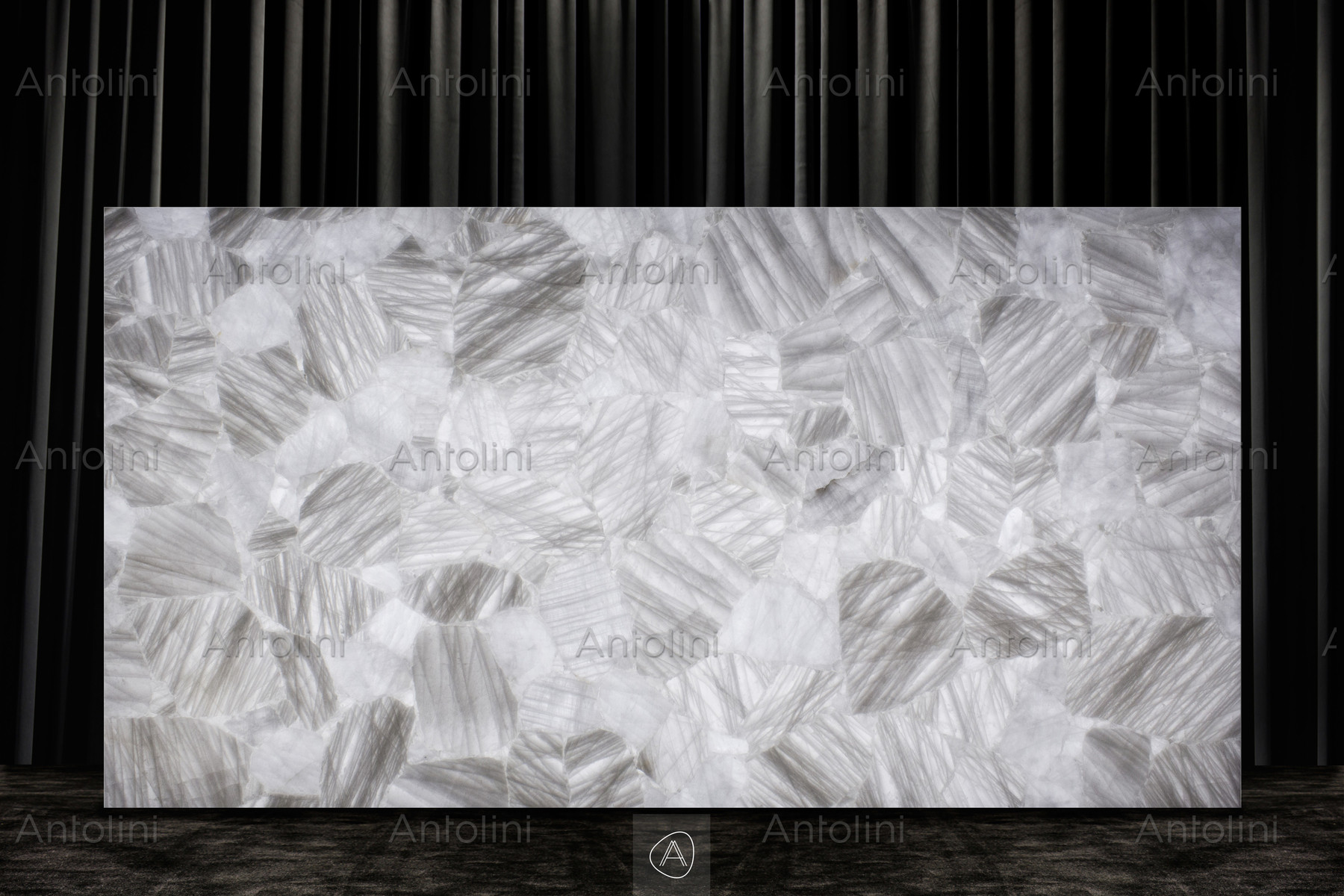 La materia originale viene interpretata con creatività per dare vita ad infinite declinazioni che ne esprimano lo splendore e la magnificenza. Più di 130 varietà di gemme preziose e selezionate arricchiscono la Precioustone Collection di Antolini®. Ametiste, quarzi, diaspri e agate si trasformano in rivestimenti di classe assoluta. Queste pietre, in particolare le varietà traslucide che possono essere retroilluminate, creano suggestioni cromatiche irripetibili e decorano gli ambienti con effetti originali. Per esaltare gli spazi e renderli esclusivi.